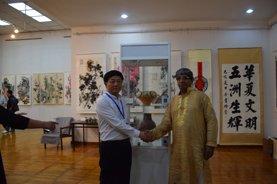 總經(jīng)理劉新安與吉國(guó)國(guó)家歷史博物館館長(zhǎng)共同商談仰韶彩陶收藏事宜