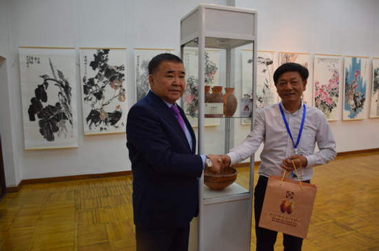 向吉國(guó)議員贈(zèng)送彩陶雙聯(lián)壺留念